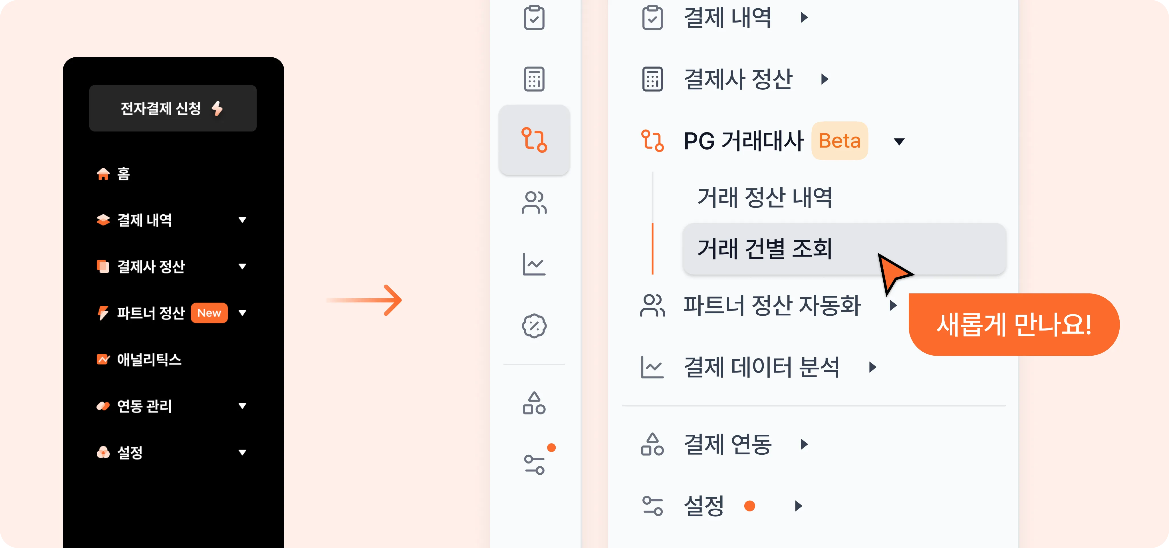 기존 [파트너 정산] 메뉴는 [파트너 정산 자동화], [애널리틱스] 메뉴는 [결제 데이터 분석]으로 변경됩니다.