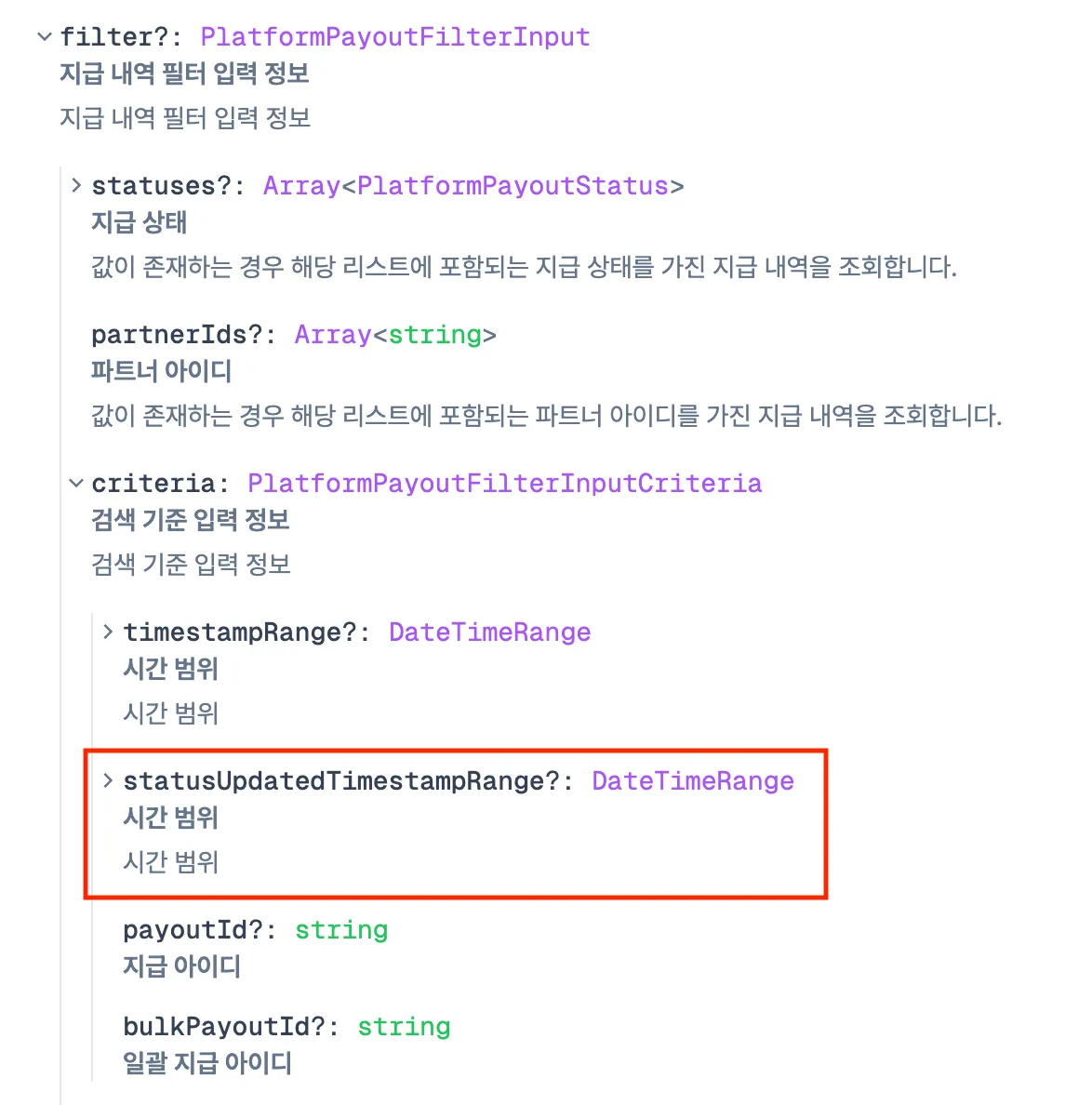 지급 내역 다건 조회 필터에 상태값 업데이트 시간 범위 추가